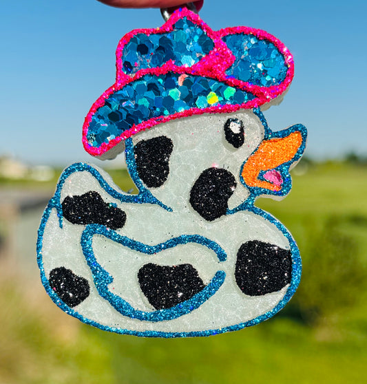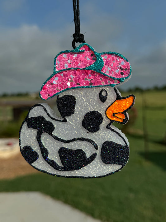 Cow Print Rubber Duck with Hat Vent Clips-2 clips