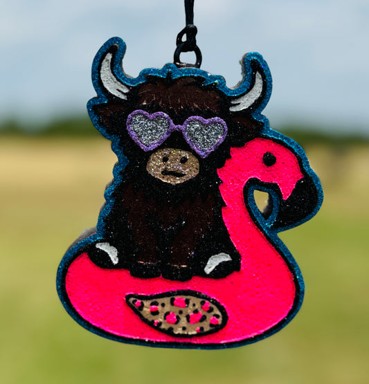 Highland in Flamingo with sunglasses in Floatie