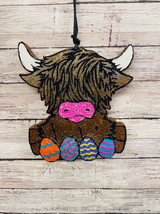Highland with Easter eggs