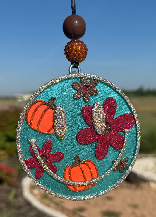 Fall Pumpkin and Flowers Smiling Face