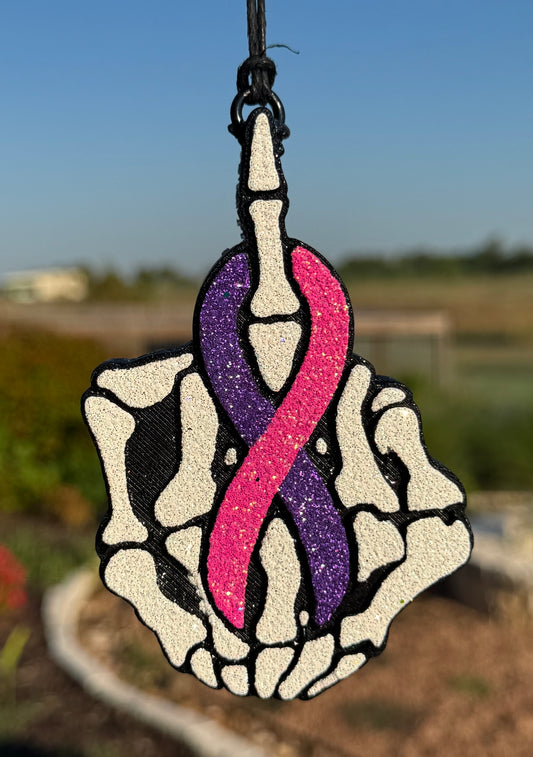 F Off Skeleton Hand with Cancer Ribbon