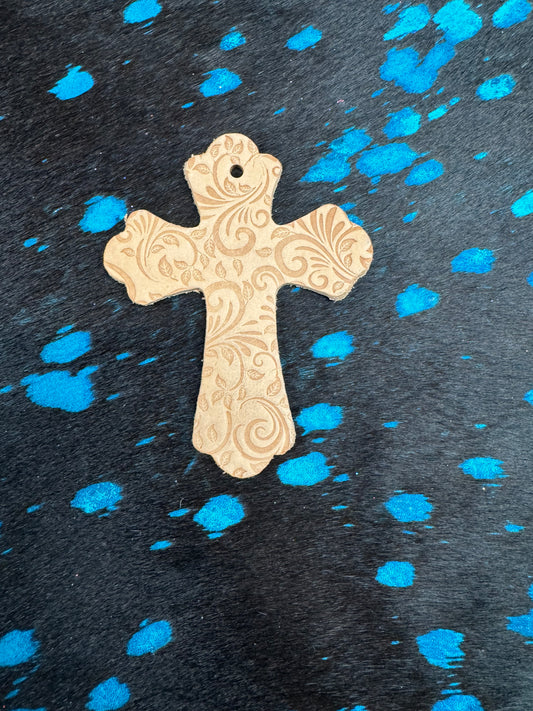 Genuine Leather Tooled Cross Car Charm