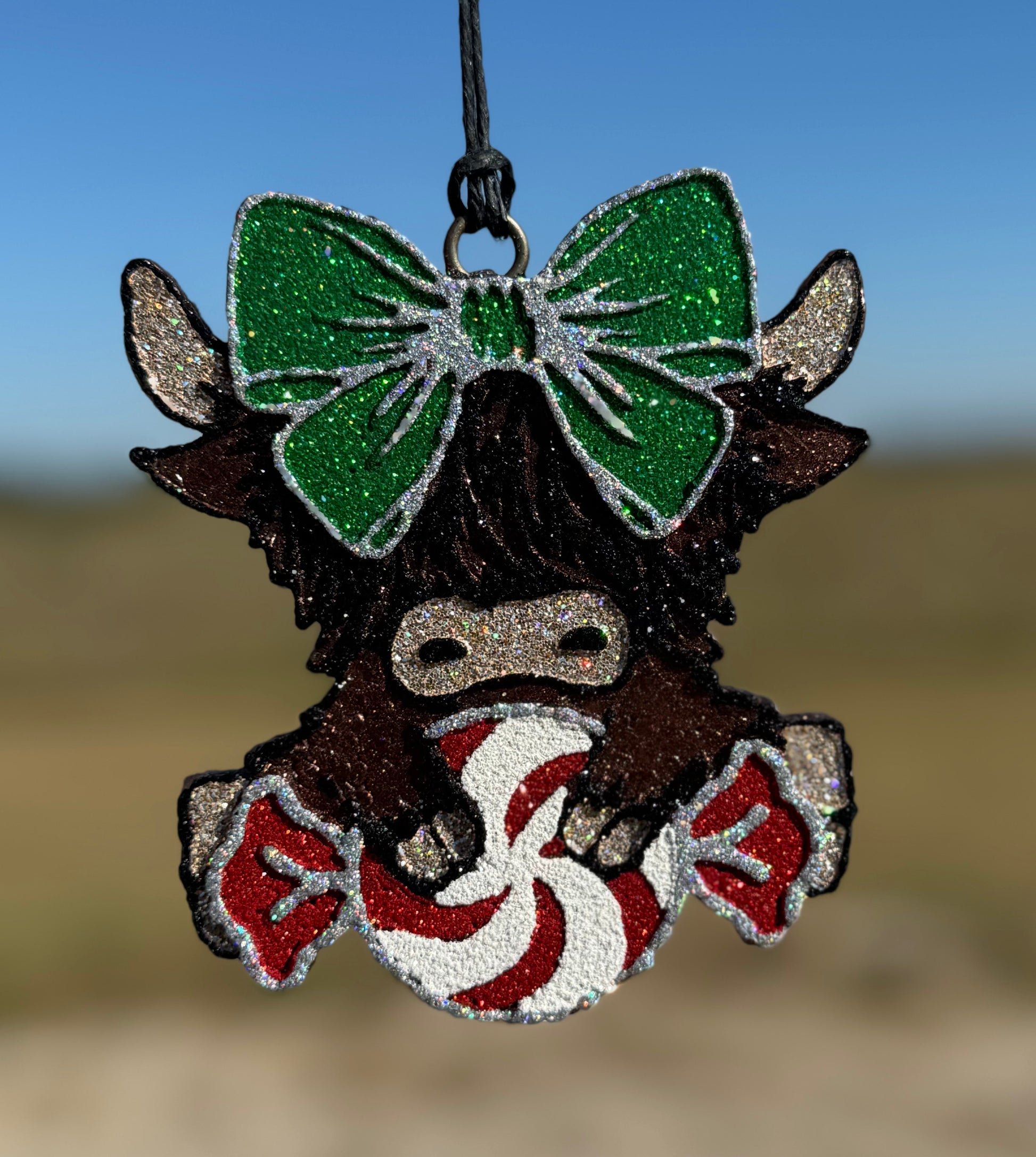 Add our Highland cow with Peppermint candy Freshie to your car to add a touch of holiday spirit for your daily commute or road trips during the holiday season.