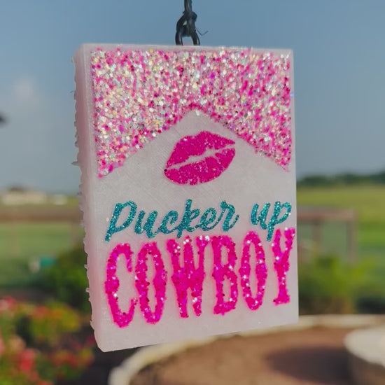 Featuring our Pucker Up Cowboy Freshie. Perfect for Valentine's or any other occasion. Choose your custom scent from our posted scent list and enjoy this cute accessory in your home, office, or car!