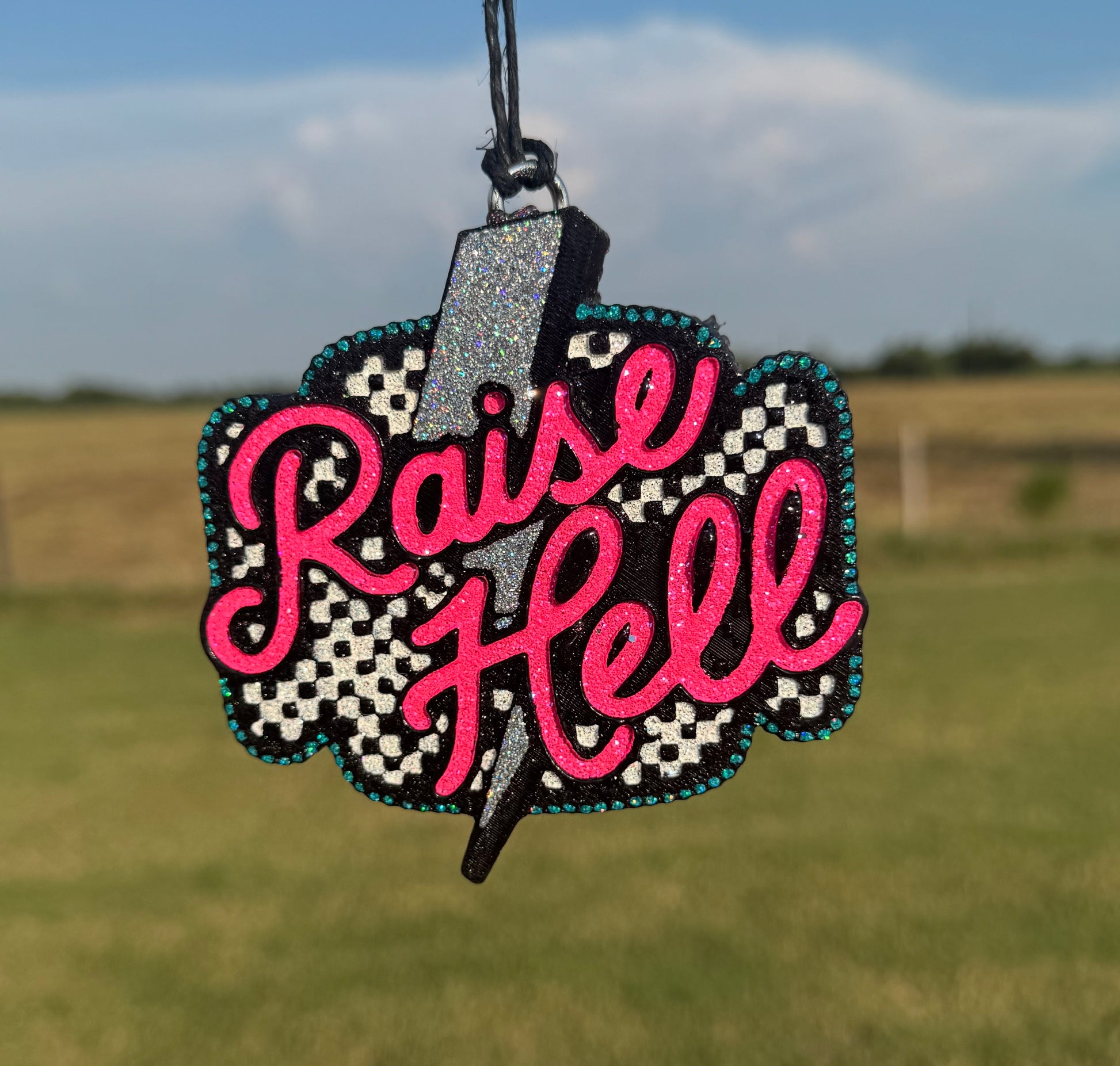 Featuring our western Raise Hell freshie. Choose your custom scent from our posted scent list and enjoy this cute accessory in your home, office, or car!