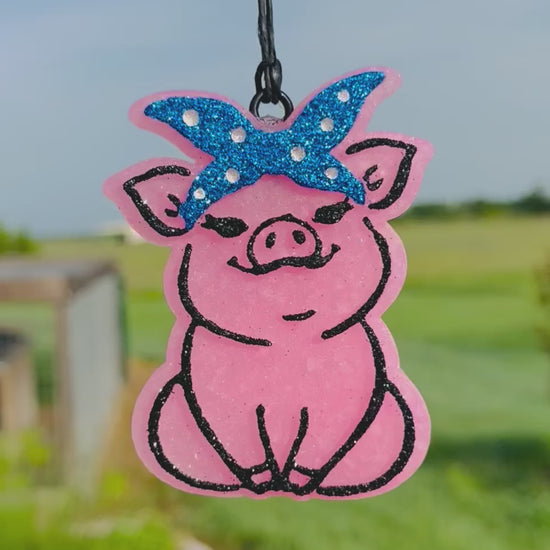 Featuring our cute sitting pig Freshie. Choose your custom scent from our posted scent list and enjoy this cute accessory in your home, office, or car!