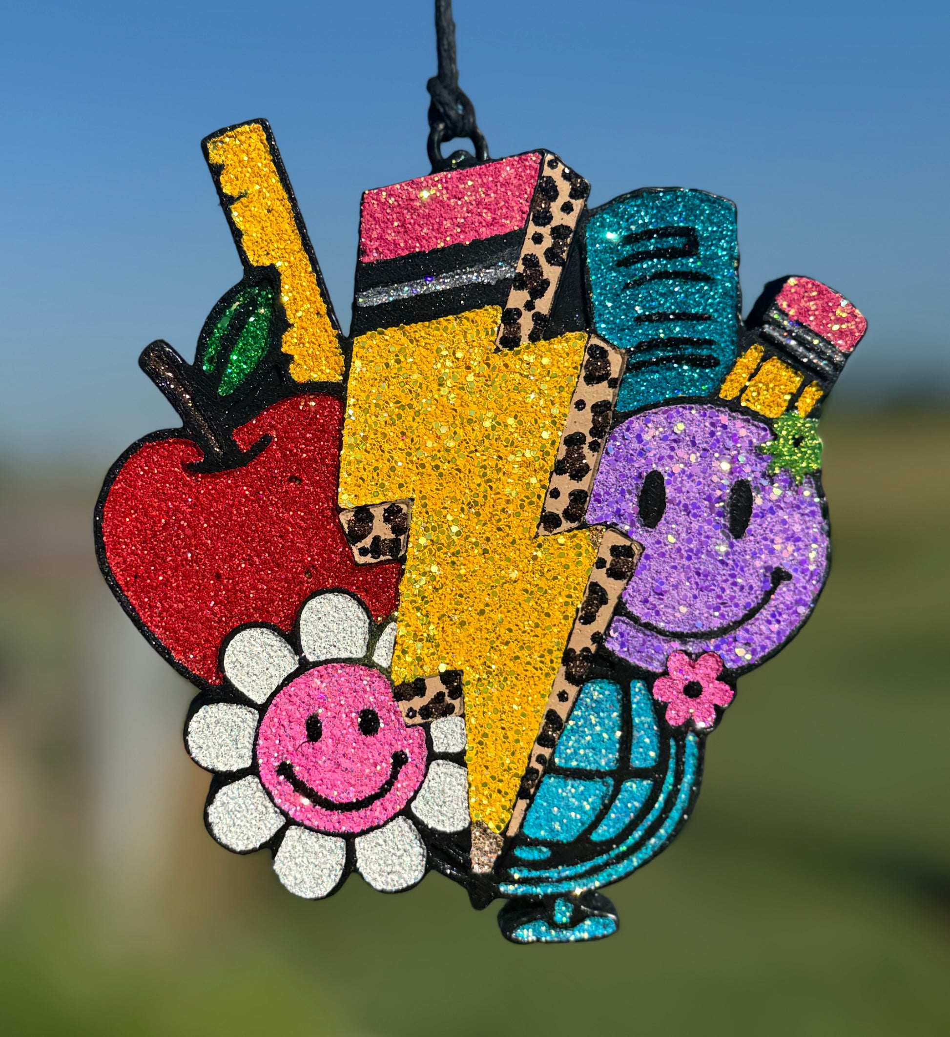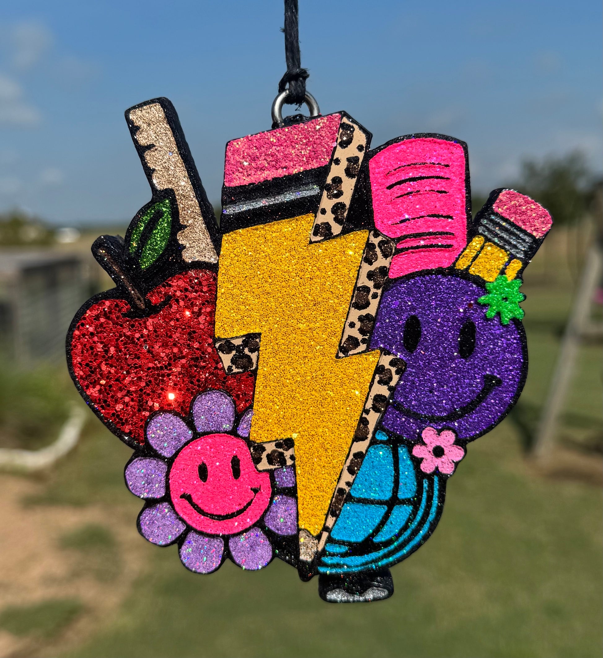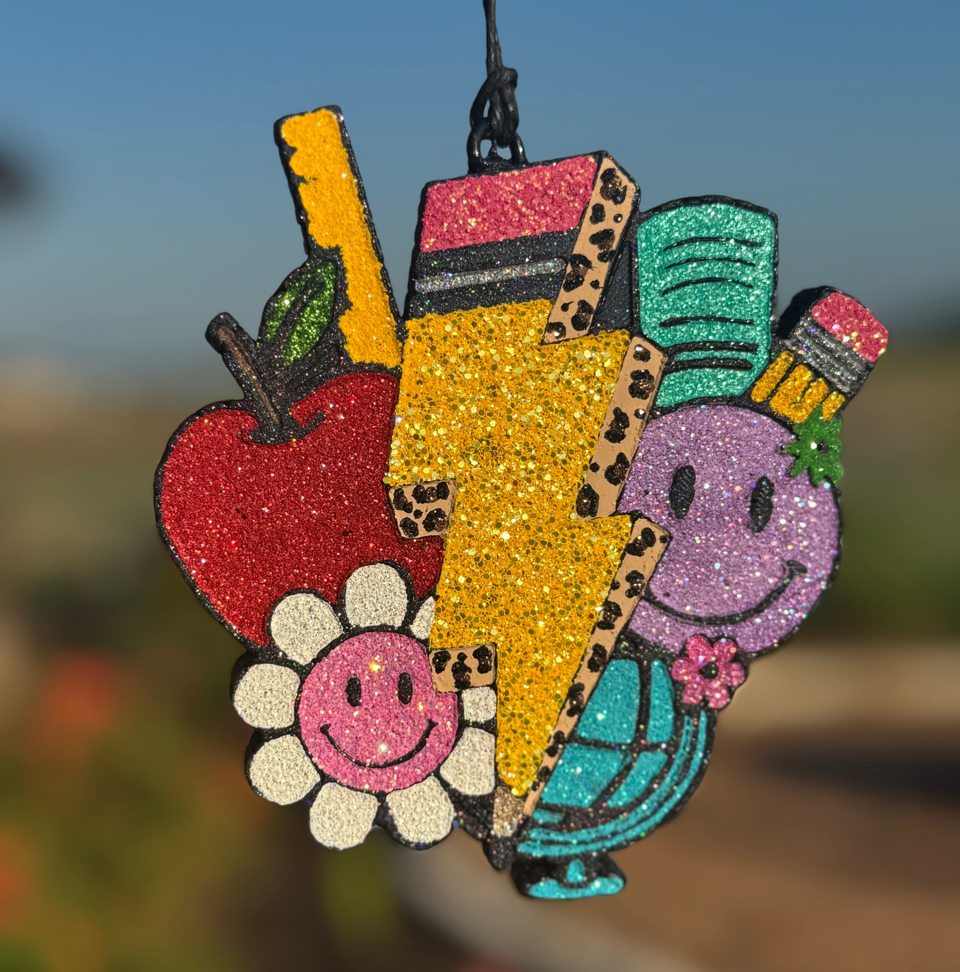 Featuring our teacher lightening bolt Freshie. Choose your custom scent from our posted scent list and enjoy this cute accessory in your home, office, or car!
